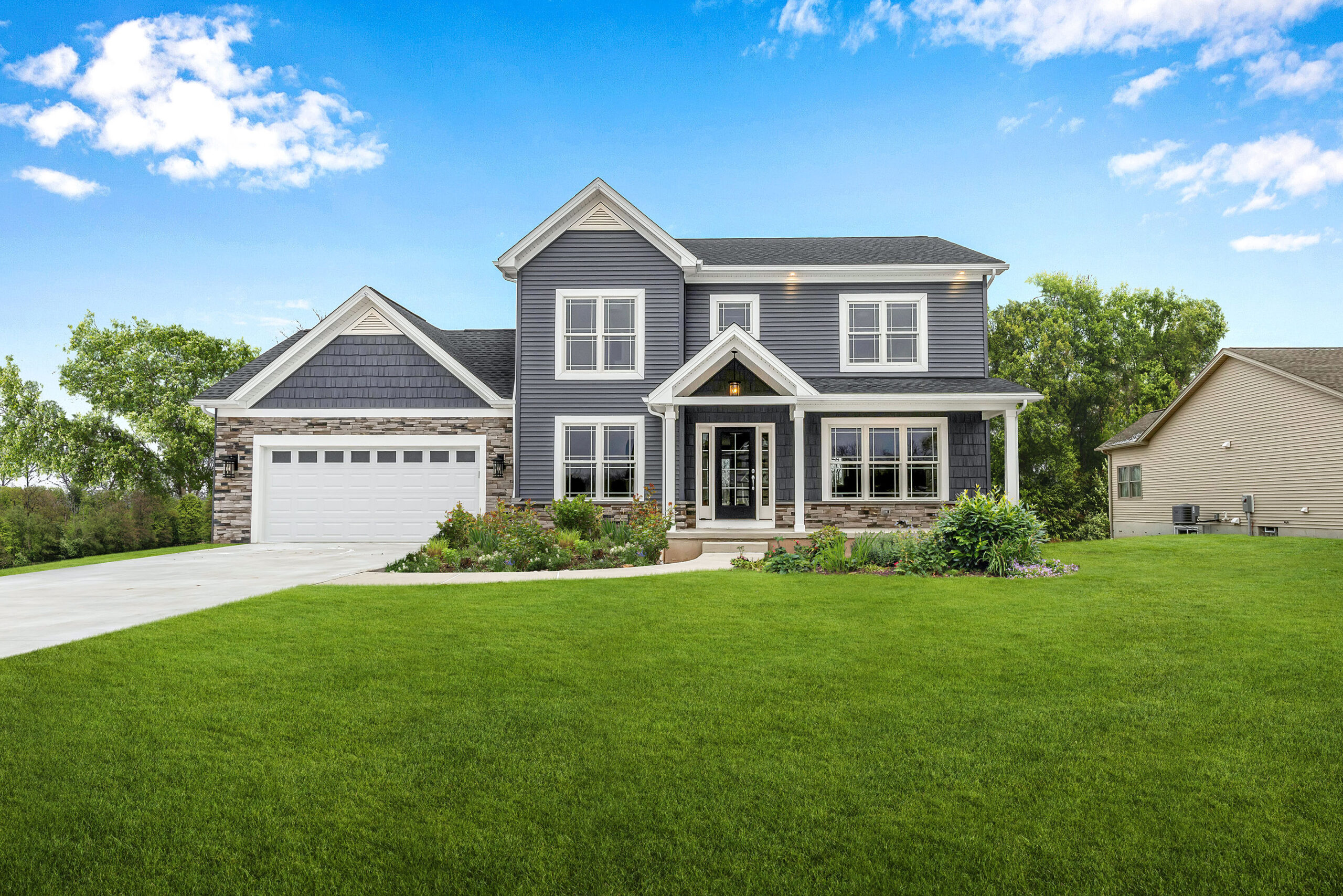 The Concord is one of Natale’s two story neighborhood floor plans offered in Brookfield Meadows and Miller’s Crossing. The size of this home ranges from 2,042 to 2,524 square feet. The Concord offers 3 – 4 bedrooms, 2.5 – 3.5 bathrooms, and 2 – 3 garage spaces.