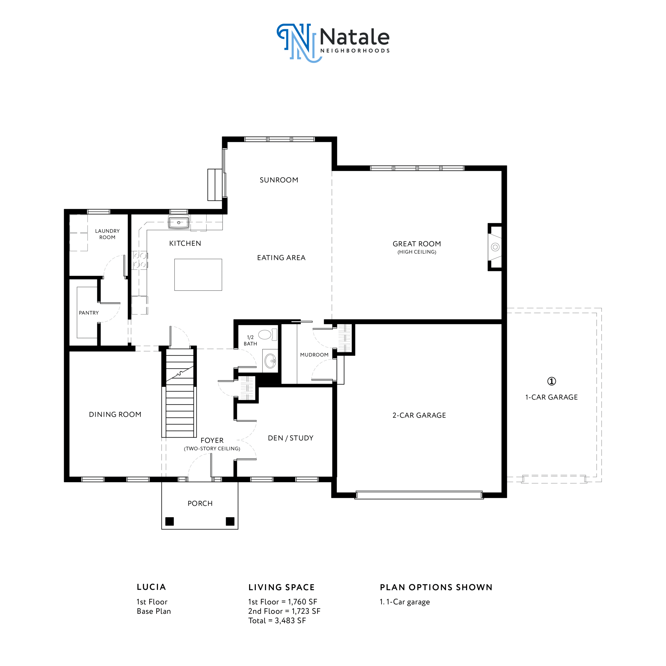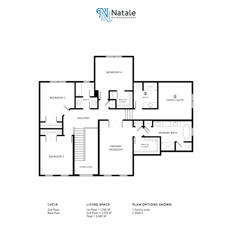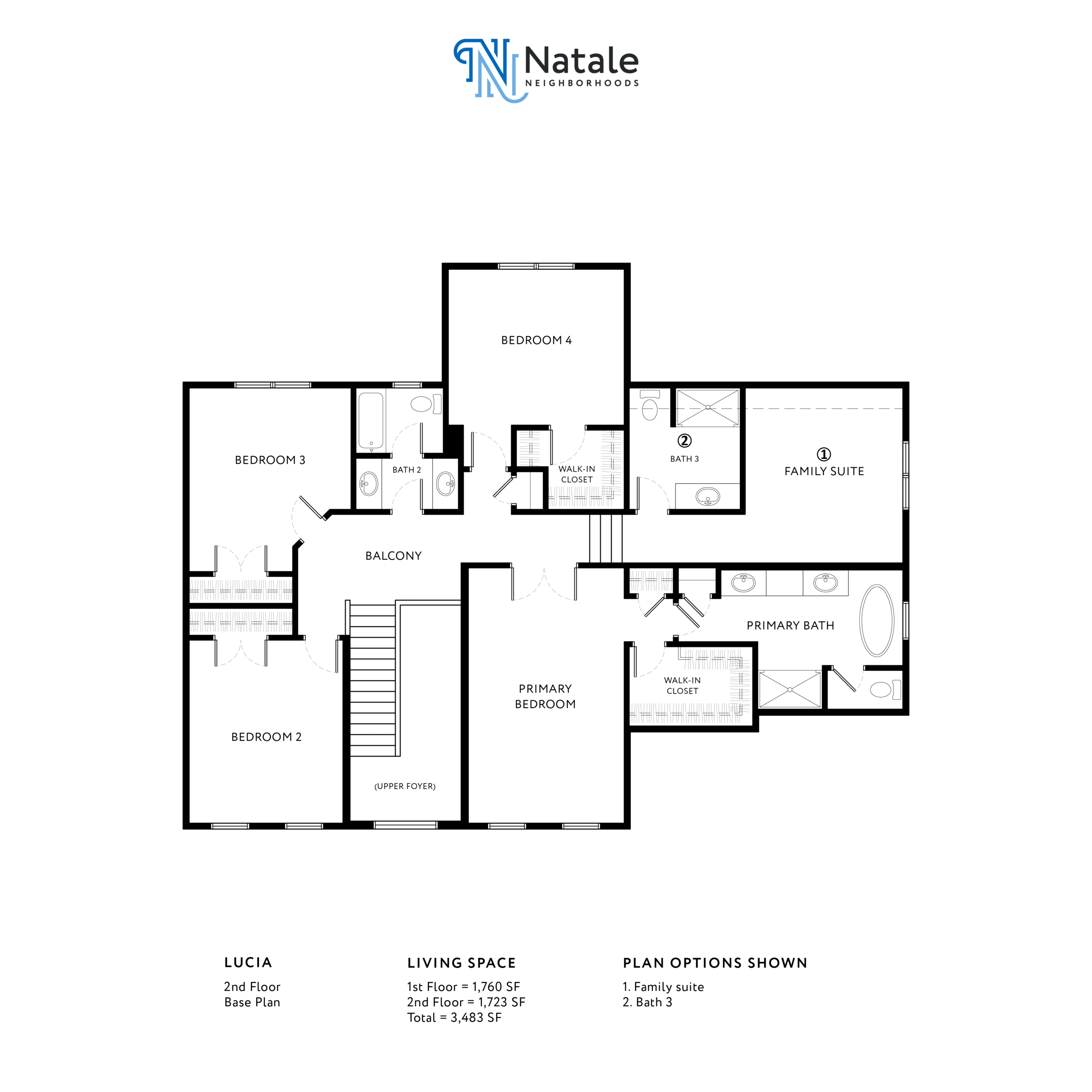 The Lucia model offers a variety of options to customize the home to your preferences. To start, you can add a 1-car garage, 2-car sideload garage, or a 1-car sideload garage. For the first floor, you can add a food prep kitchen, 10’ 1st-floor ceiling height, coffered ceiling, and a rear covered porch. For the second floor, you can add a family suite, bathroom 3, laundry room, box ceiling, and more. Are you ready to elevate every moment? Begin your journey today with Natale Builders!