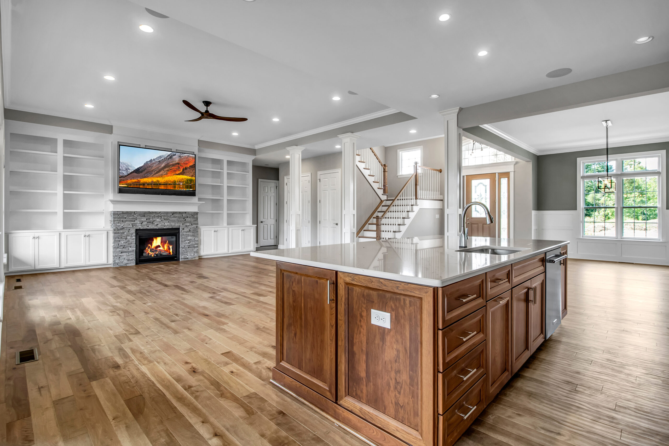 The first floor of this elegant residence boasts a plethora of features. Upon entering from the garage, you will be greeted by the thoughtfully located laundry room, mudroom, and pantry. From there, you will enter the kitchen with plenty of room for a large island. The open-concept floorplan seamlessly connects the kitchen, two story great room, and dinette together to enjoy quiet mornings for coffee or entertaining guests for a dinner party. Situated between the kitchen and dining room is a butler’s pantry that allows you easy access to both rooms. The stunning 2 story front foyer provides a grand entrance with a beautiful view of the great room as you enter your new home.
