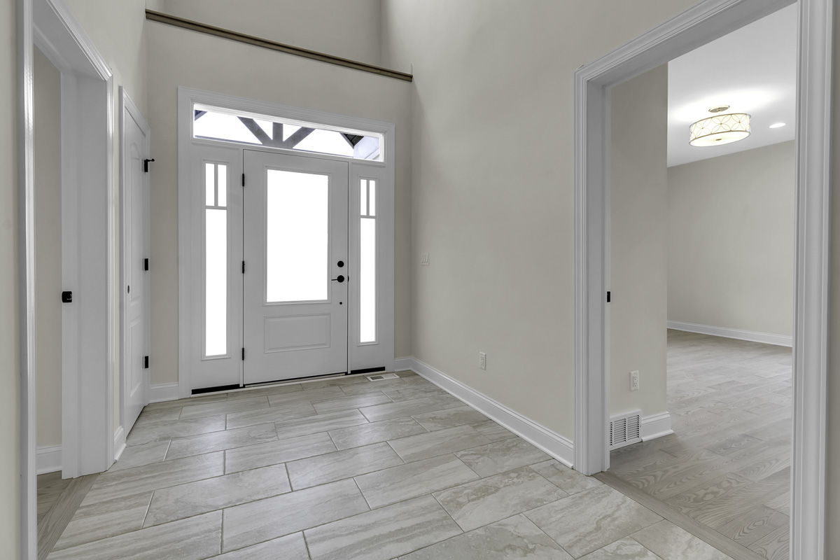 As you enter the home, you’ll be welcomed by a two-story foyer with the den/office and a half bathroom on one side and the opulent dining room on the other side. As you move towards the back of the house, you’ll come across the mudroom with ample closet space, which provides access to the garage. Beyond the mudroom, you’ll find yourself at the back of the house with the expansive kitchen, dinette, and great room an open space perfect for entertaining.