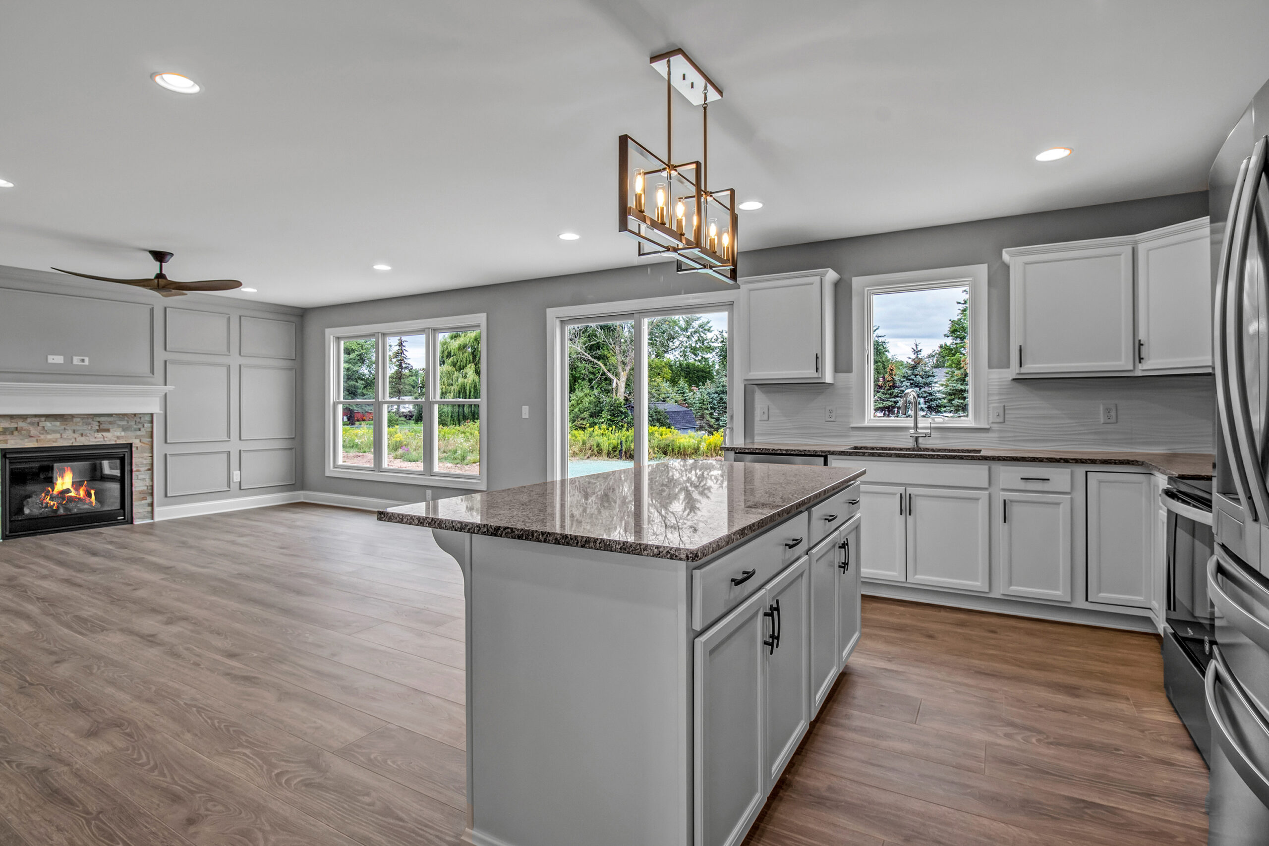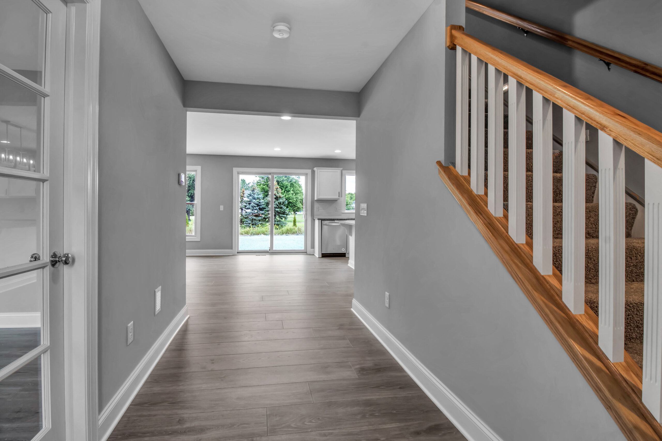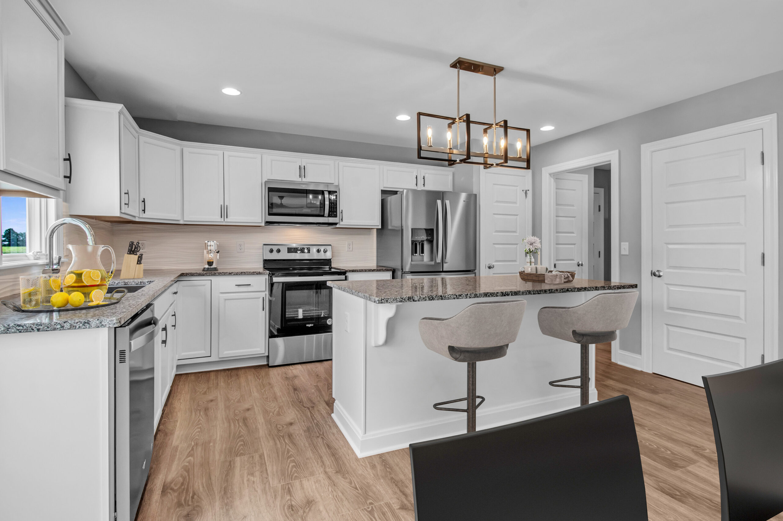When you enter the house you are greeted by the foyer which gives you a direct line of sight of the first floor and backyard views. In the front of the house, the den/office space can double as a bedroom. The first floor is perfect for entertaining with an open floor plan connecting your great room and kitchen. The first floor also offers a mudroom and half bathroom off of the kitchen leading to your garage.