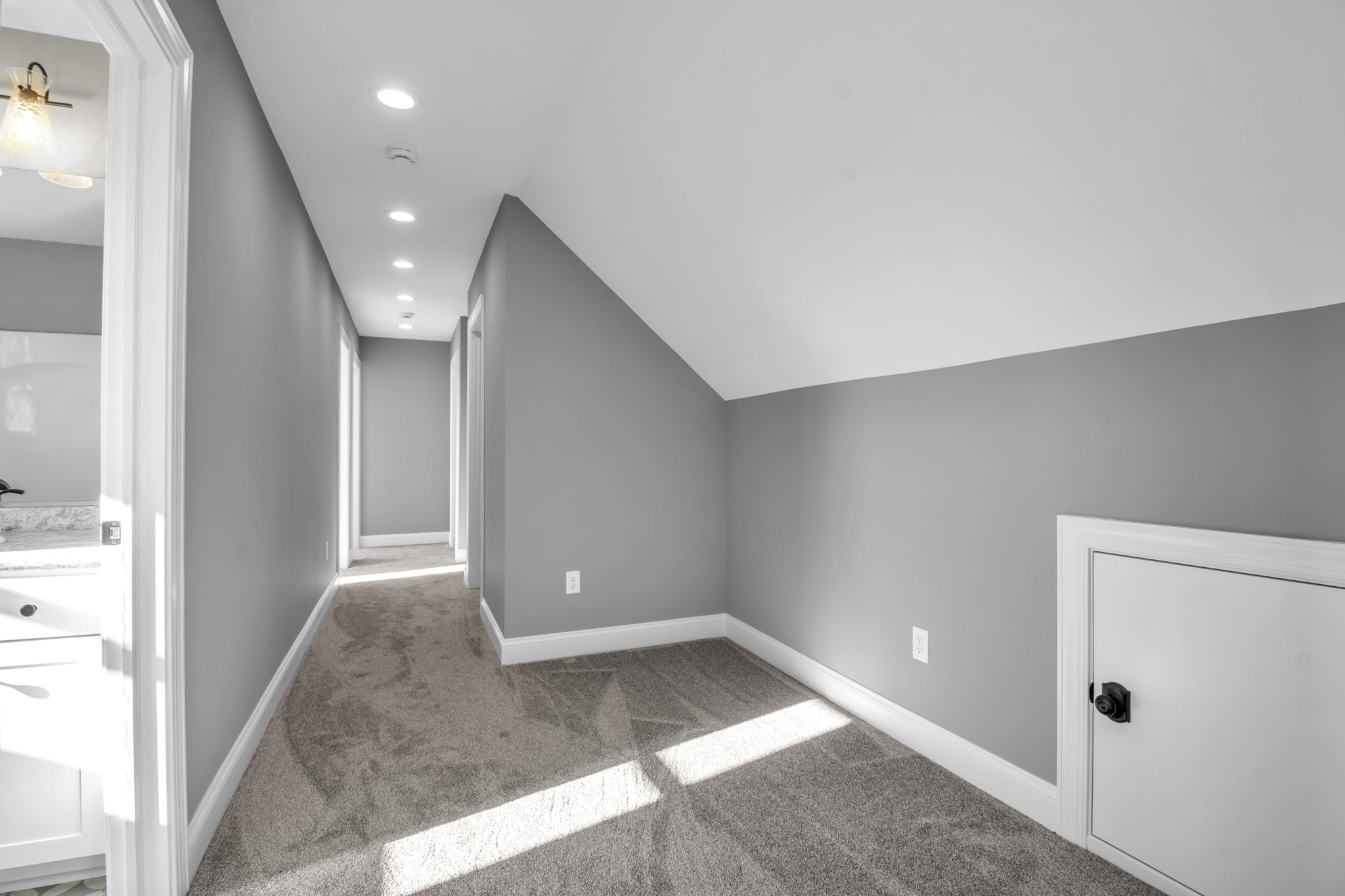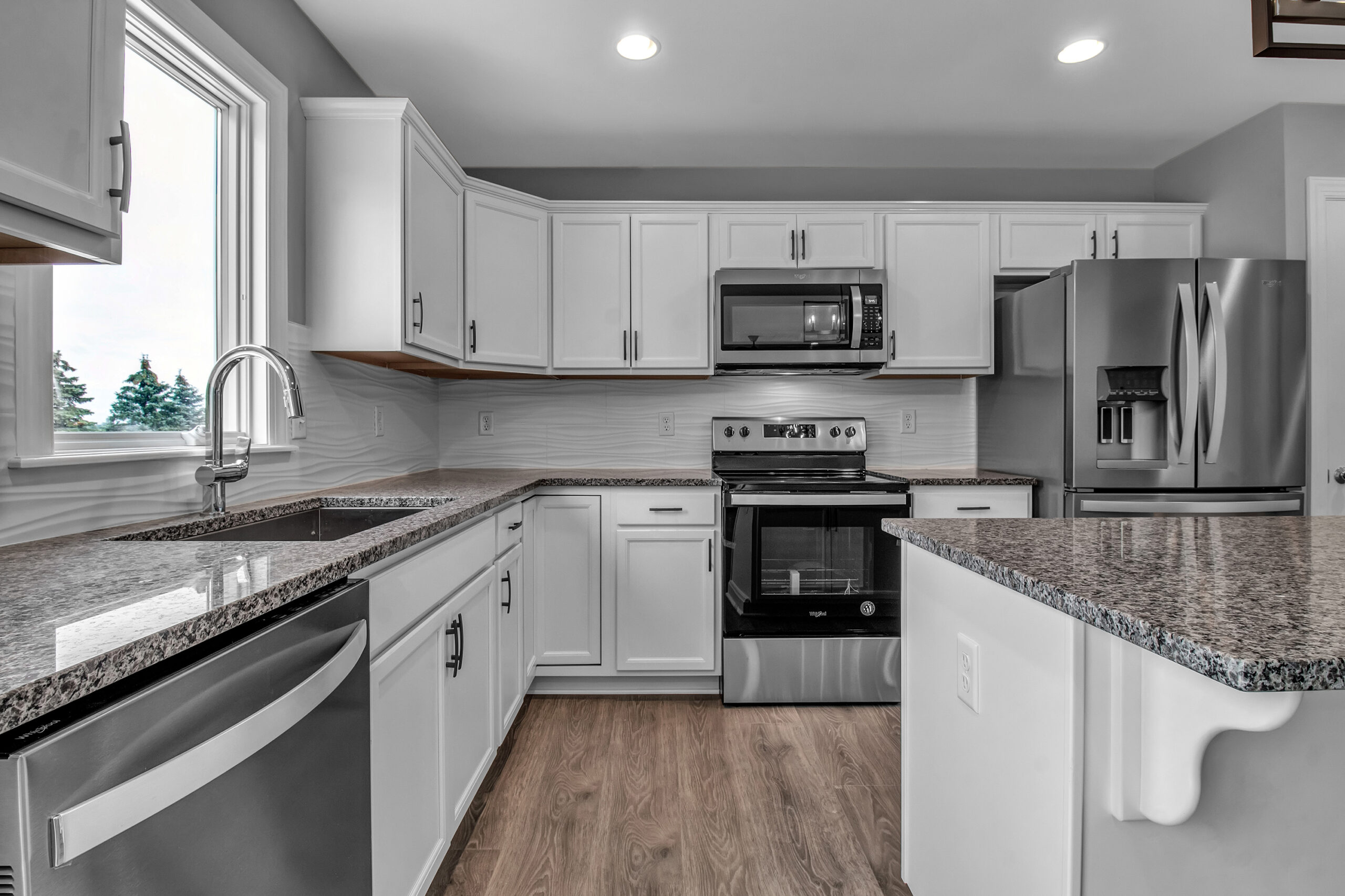 As you make your way to the second floor, the primary bedroom occupies the front of the home. The primary bedroom includes a spacious walk-in closet. The primary bathroom encompasses a double vanity, a private toilet room, and shower. On the backside of the house are two more bedrooms and down the hall is the full bathroom and laundry room.