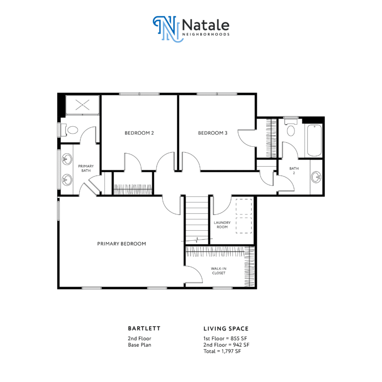 The Bartlett is one of Natale’s two-story neighborhood floor plans offered in Brookfield Meadows. The size of this home ranges from 1,802 to 2,281 square feet. The Bartlett offers 3 – 4 bedrooms, 2.5 bathrooms, and 2 – 3 garage spaces.