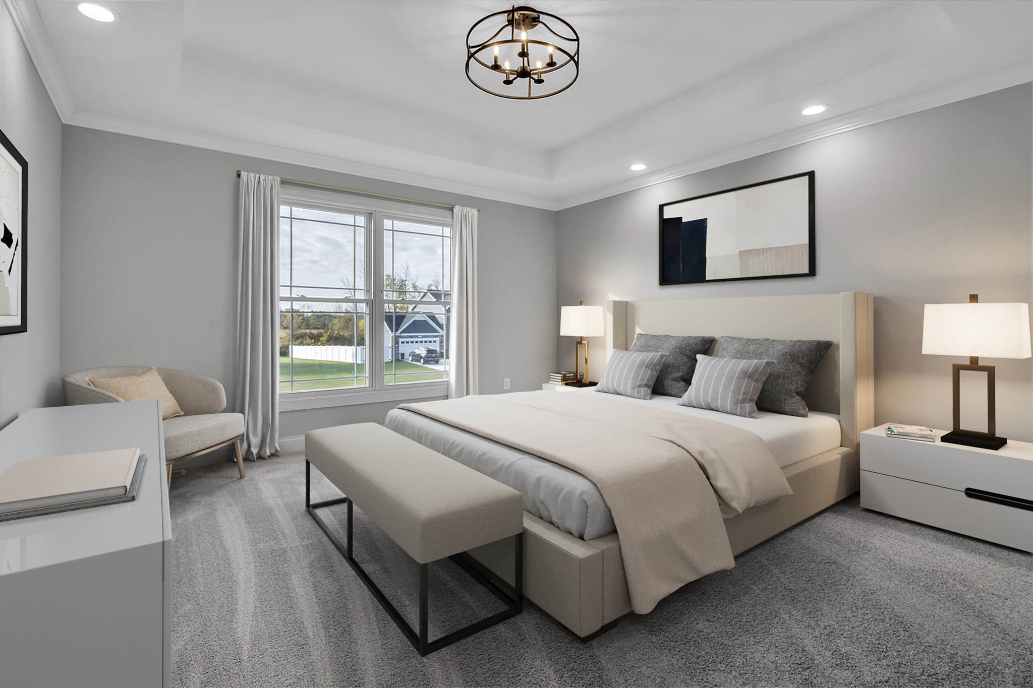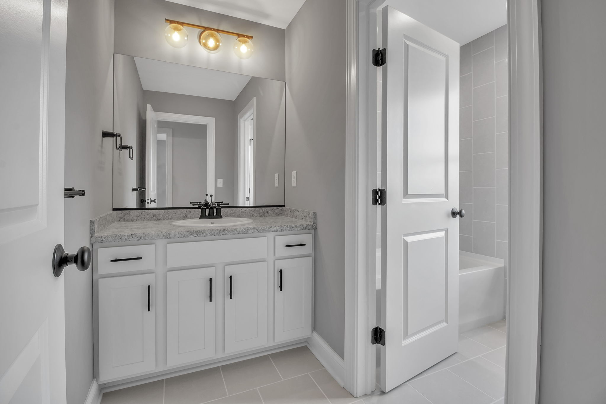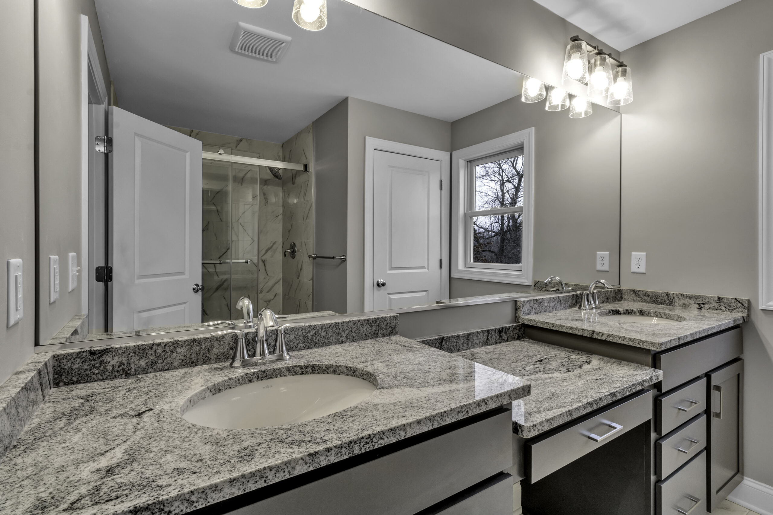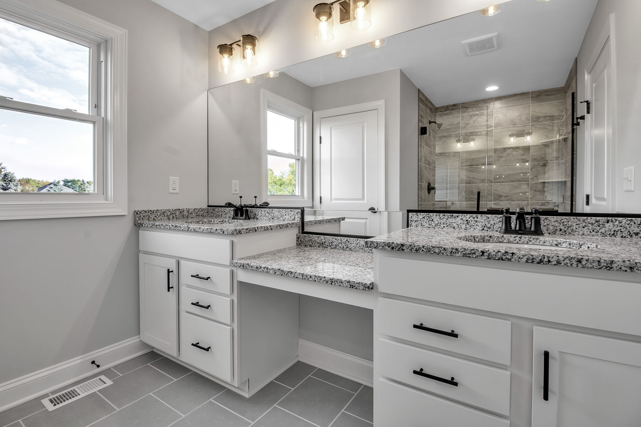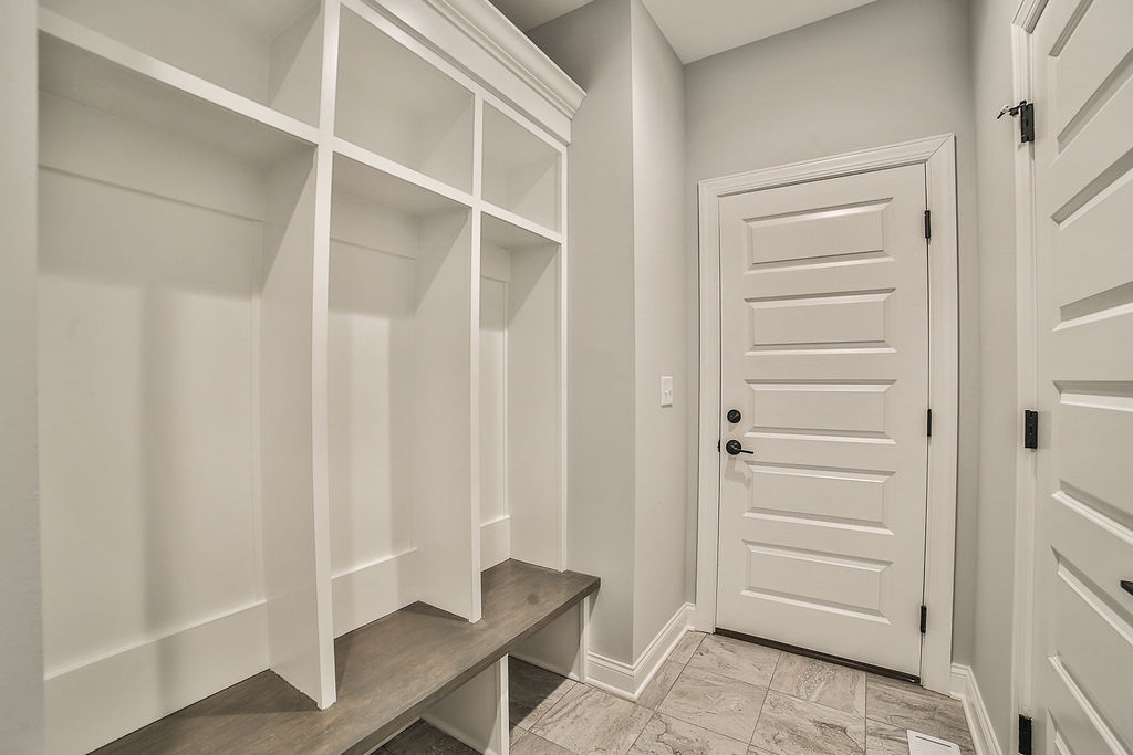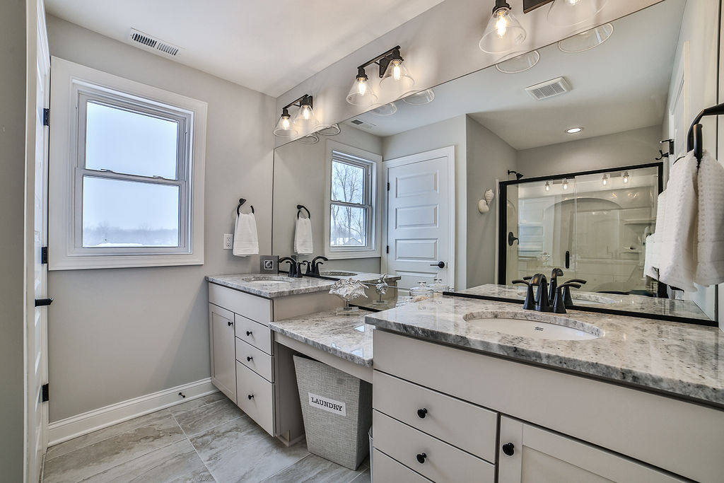 The second floor boasts an abundance of desirable amenities. On this level you’ll discover a laundry room and down the hall, a family suite that can serve a variety of purposes. The second floor also features your primary bedroom and bathroom, along with two additional bedrooms connected by a jack and jill bathroom.