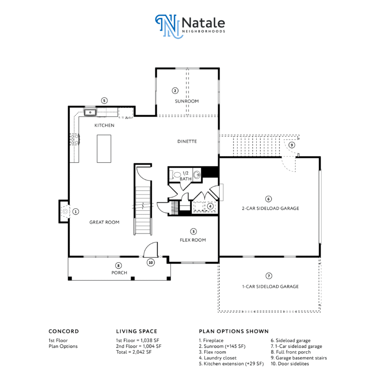 The Concord is one of Natale’s two story neighborhood floor plans offered in Brookfield Meadows and Miller’s Crossing. The size of this home ranges from 2,042 to 2,524 square feet. The Concord offers 3 – 4 bedrooms, 2.5 – 3.5 bathrooms, and 2 – 3 garage spaces.