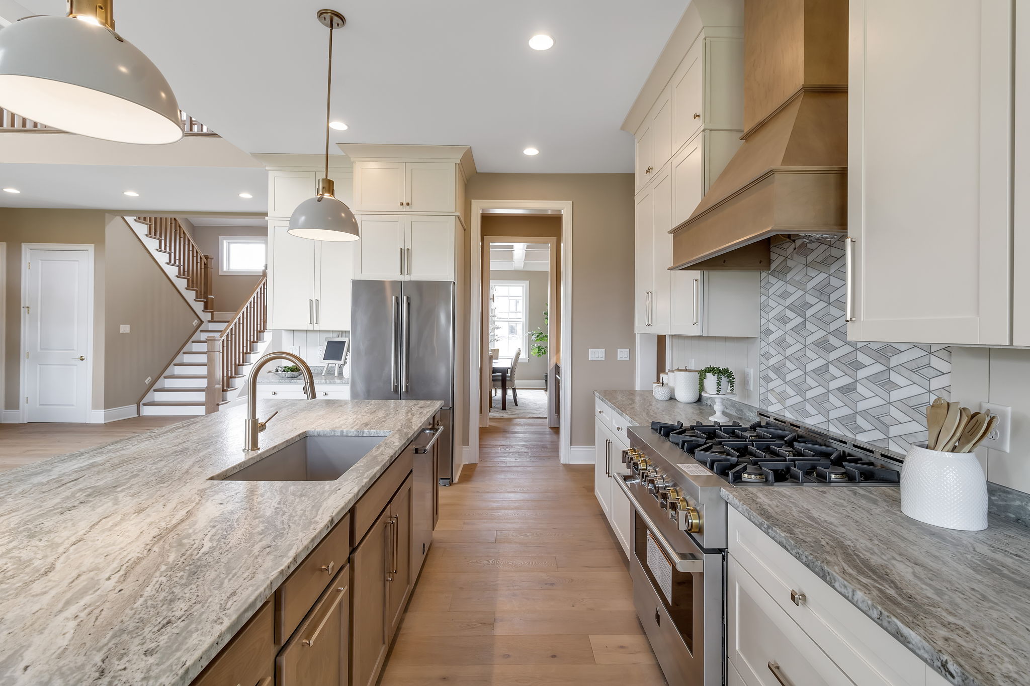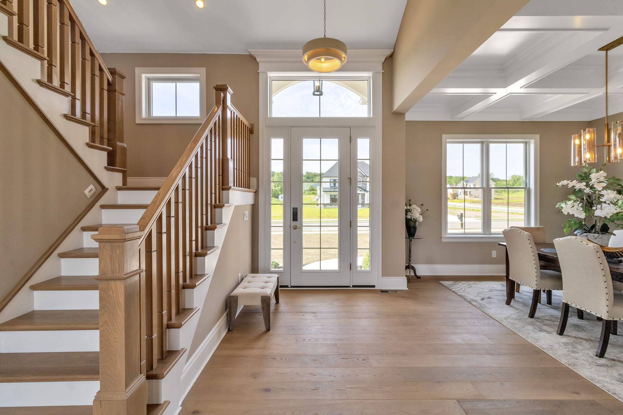 The first floor of this elegant residence boasts a plethora of features. Upon entering from the garage, you will be greeted by the thoughtfully located laundry room, mudroom, and pantry. From there, you will enter the kitchen with plenty of room for a large island. The open-concept floorplan seamlessly connects the kitchen, two story great room, and dinette together to enjoy quiet mornings for coffee or entertaining guests for a dinner party. Situated between the kitchen and dining room is a butler’s pantry that allows you easy access to both rooms. The stunning 2 story front foyer provides a grand entrance with a beautiful view of the great room as you enter your new home.