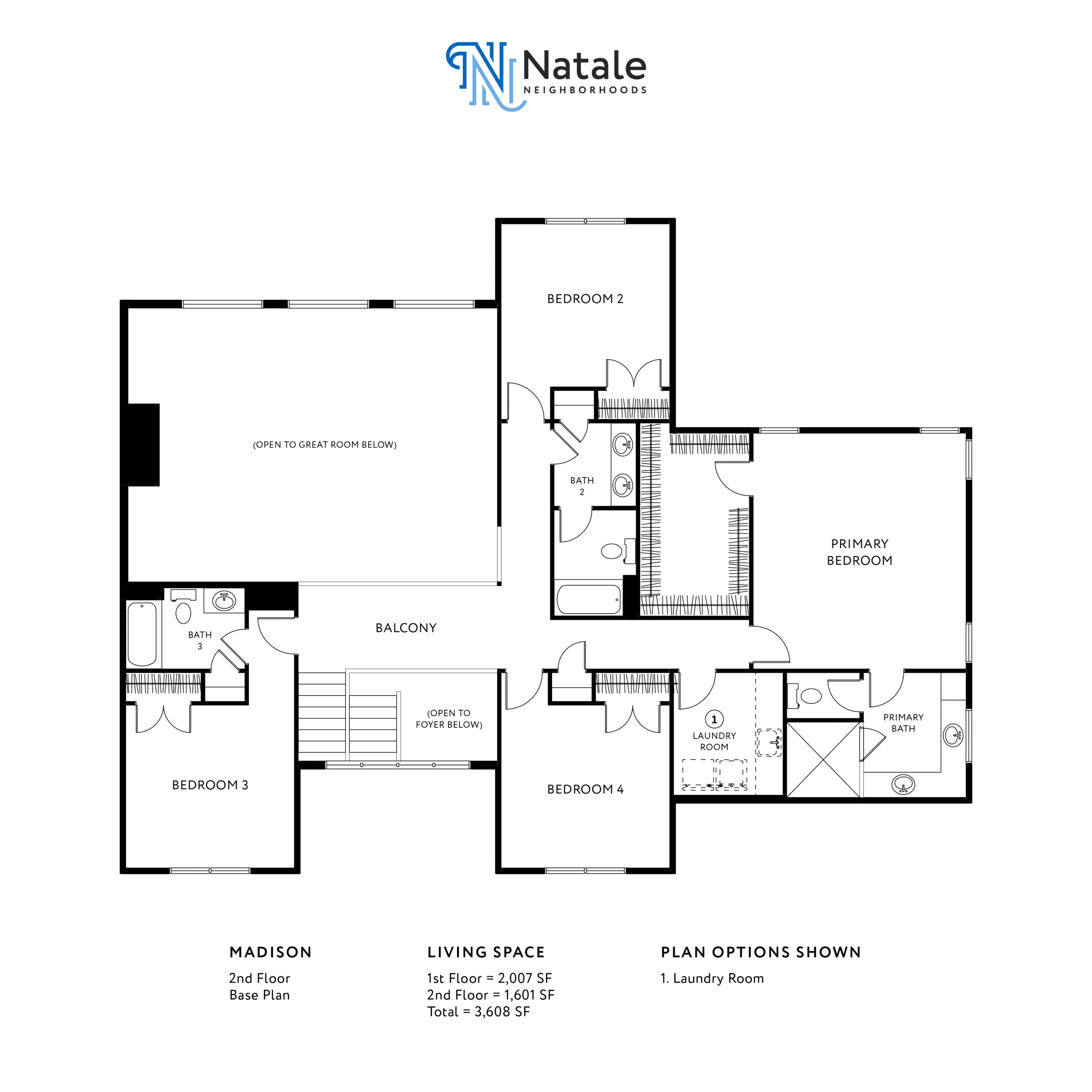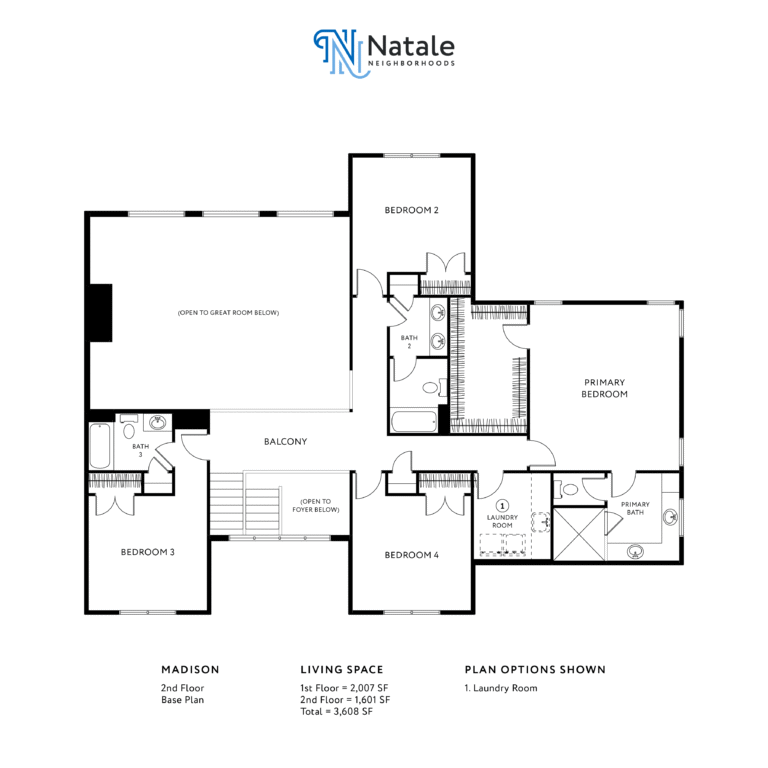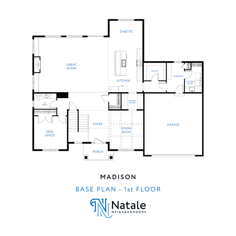 The Madison is one of Natale’s grandest two-story Neighborhood floor plans offered in the Manors at Spaulding Green. The size of this home starts at 3,556 square feet. The Madison offers 4+ bedrooms, 3.5+ bathrooms, and 2+ garage spaces.