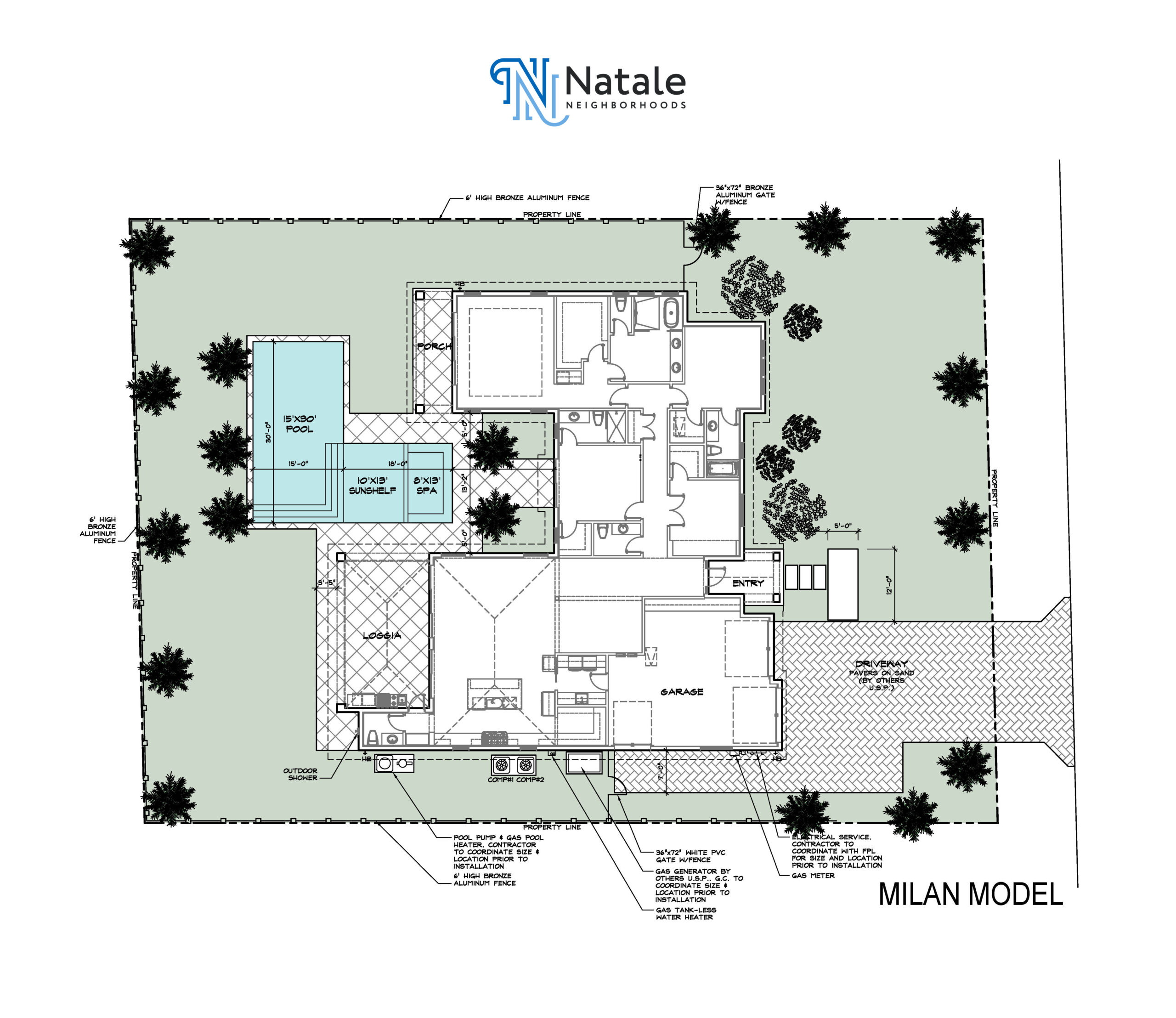 The Milan floor plan offers vaulted ceilings, designer finishes, top-of-the-line appliances, expansive open floor plan, gourmet kitchen, outdoor summer kitchen, oversized pool with a sun shelf and flow-over waterfall spa. 1 golf cart bay included.