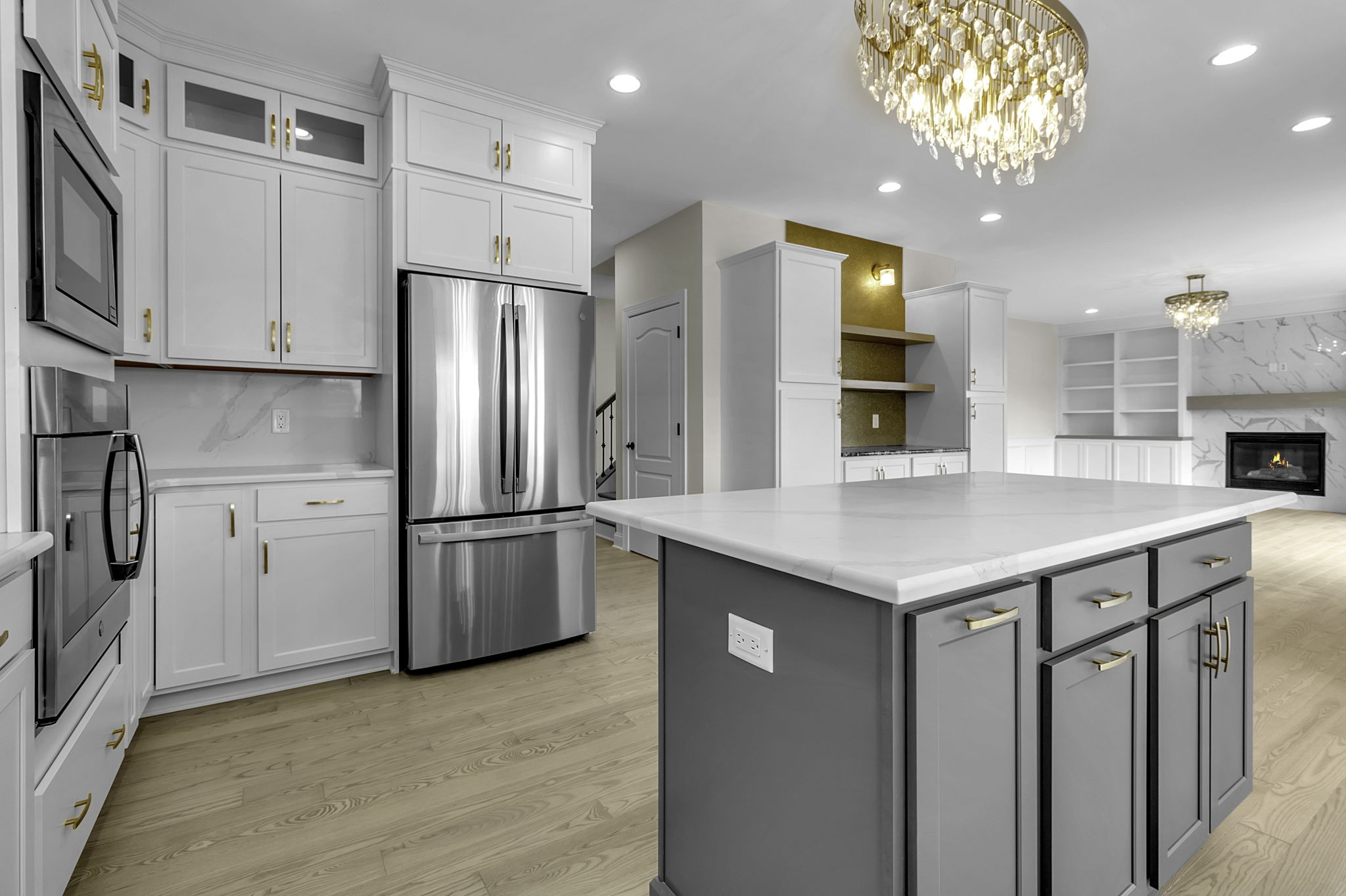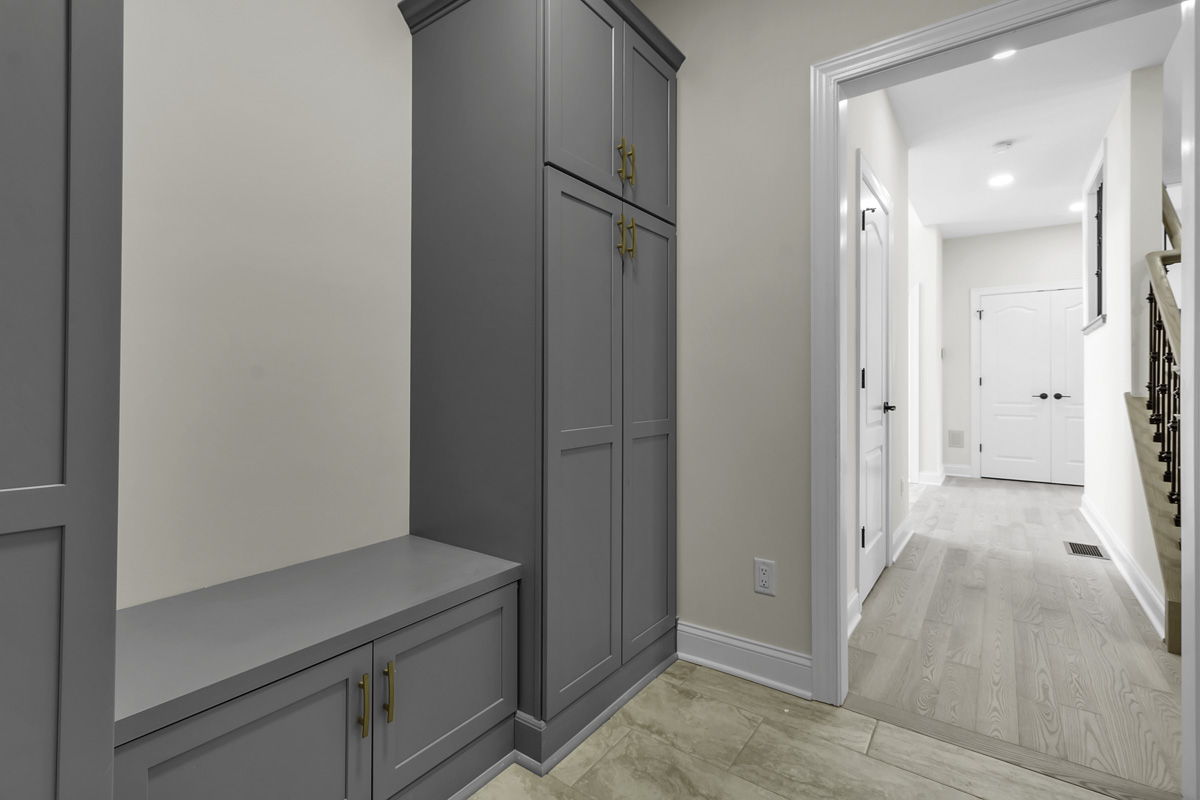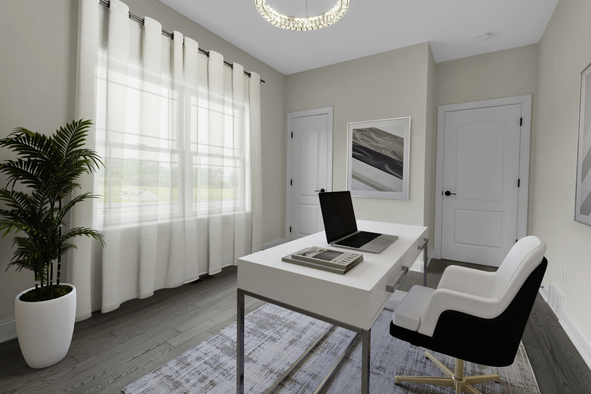 As you enter the home, you’ll be welcomed by a two-story foyer with the den/office and a half bathroom on one side and the opulent dining room on the other side. As you move towards the back of the house, you’ll come across the mudroom with ample closet space, which provides access to the garage. Beyond the mudroom, you’ll find yourself at the back of the house with the expansive kitchen, dinette, and great room an open space perfect for entertaining.