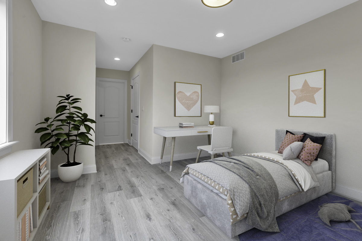 As you reach the second floor, you’ll encounter a sizable family suite and a balcony that overlooks the foyer below. This level includes bedrooms 2 and 3, a full bathroom, and a laundry room. Continuing down the hall, you’ll discover the generously sized primary bedroom featuring two walk-in closets and an ensuite bathroom.