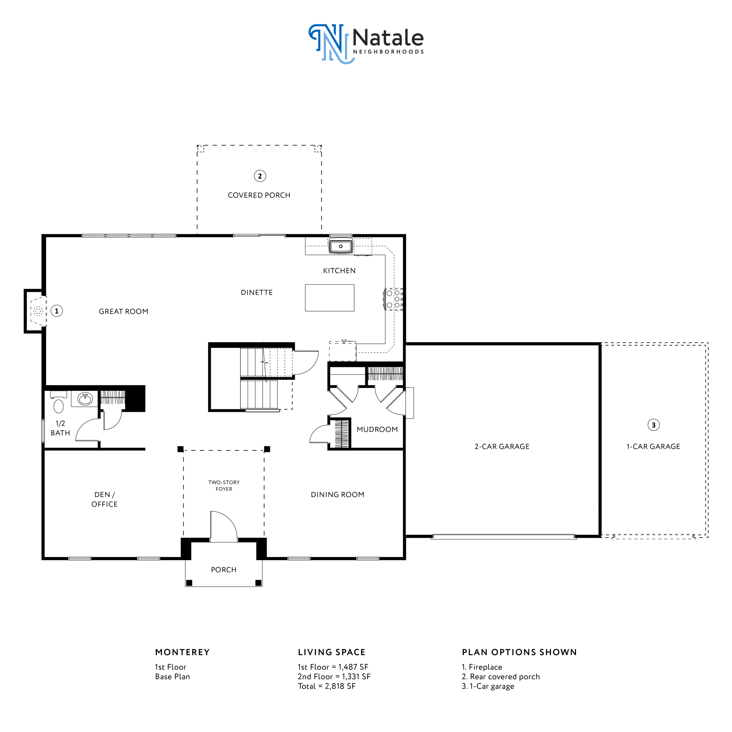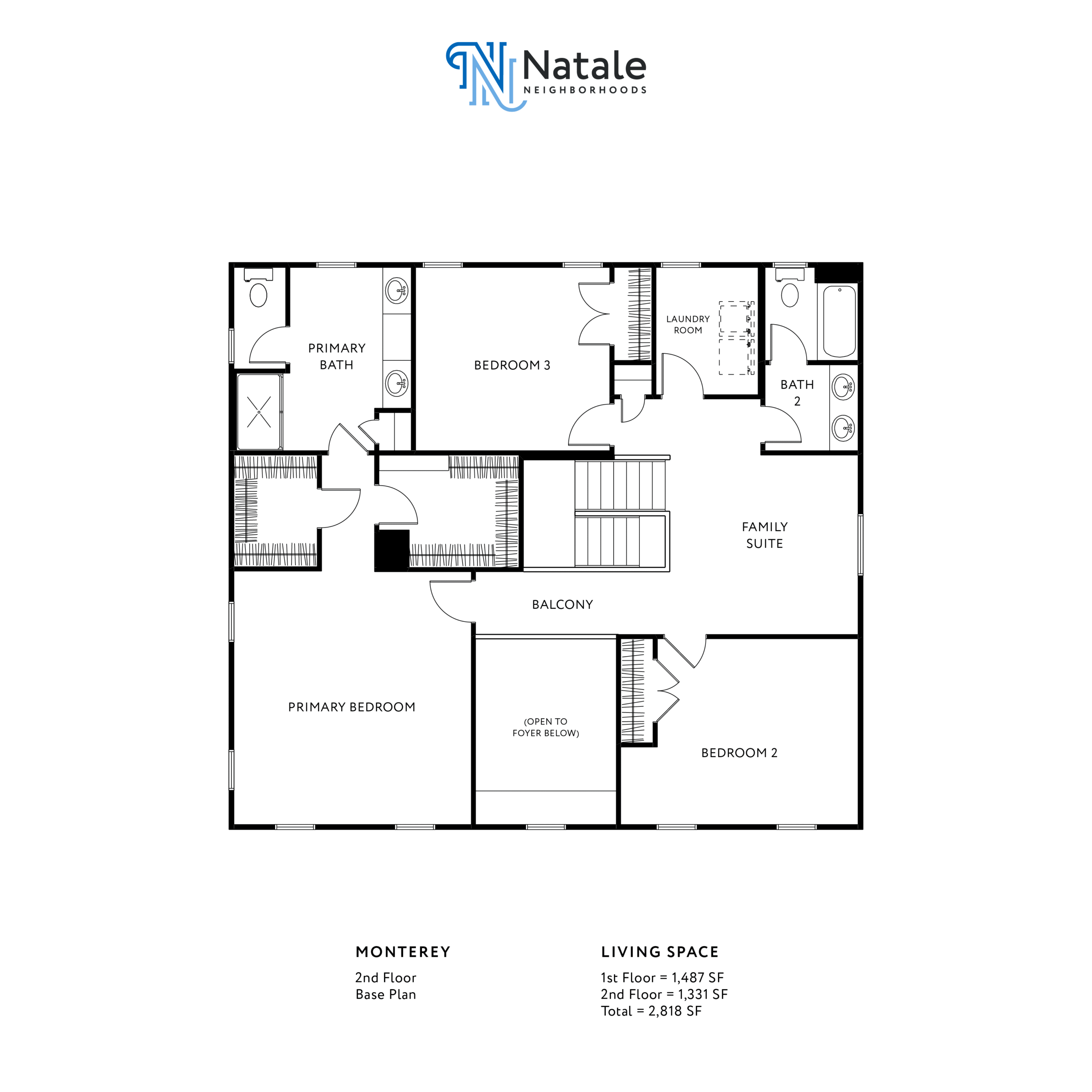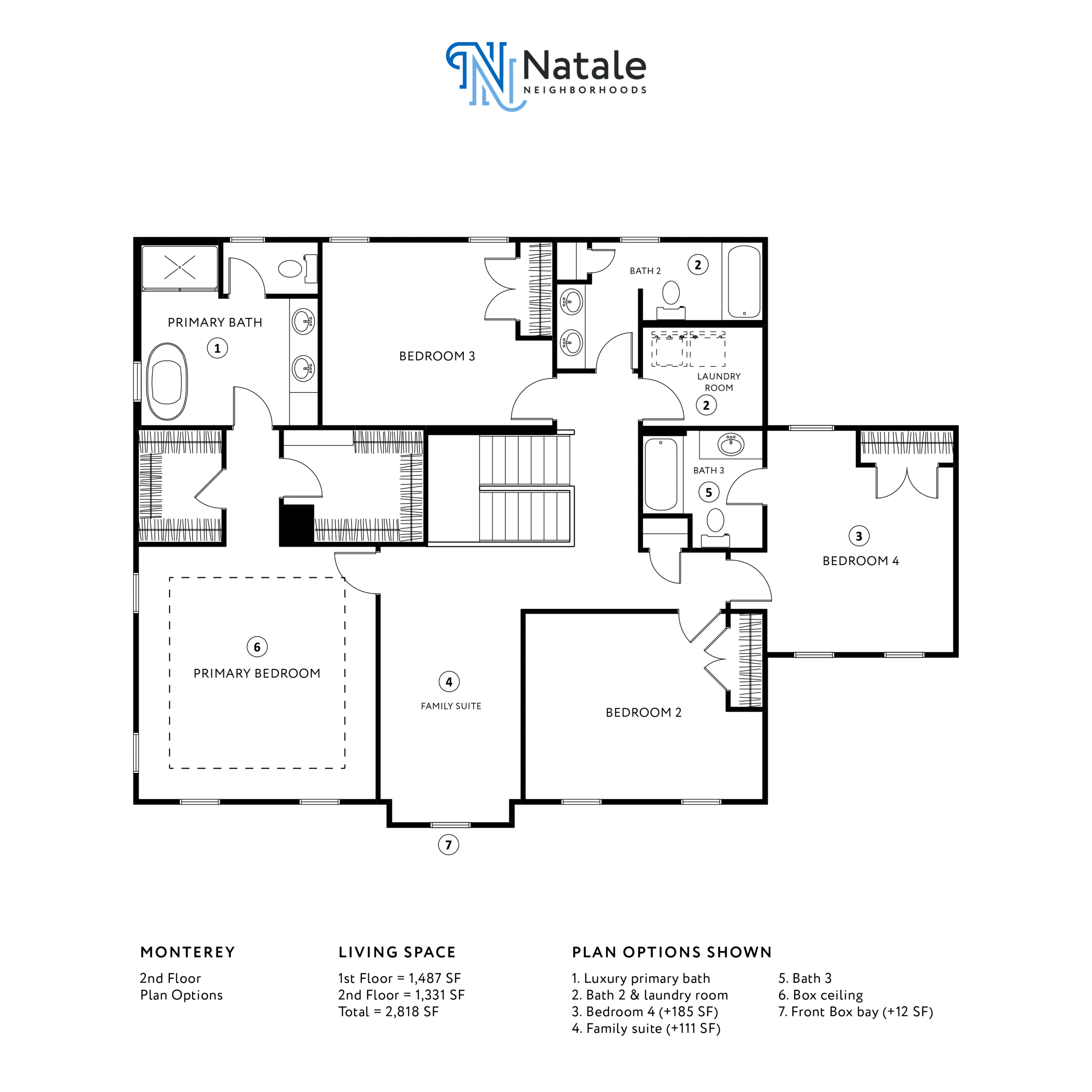 The Monterey is one of Natale’s two story neighborhood floor plans. The size of this home ranges from 2,818 to 3,271 square feet. The Monterey offers 3 – 5 bedrooms, 2.5 – 4 bathrooms, and 2 – 3 garage spaces.