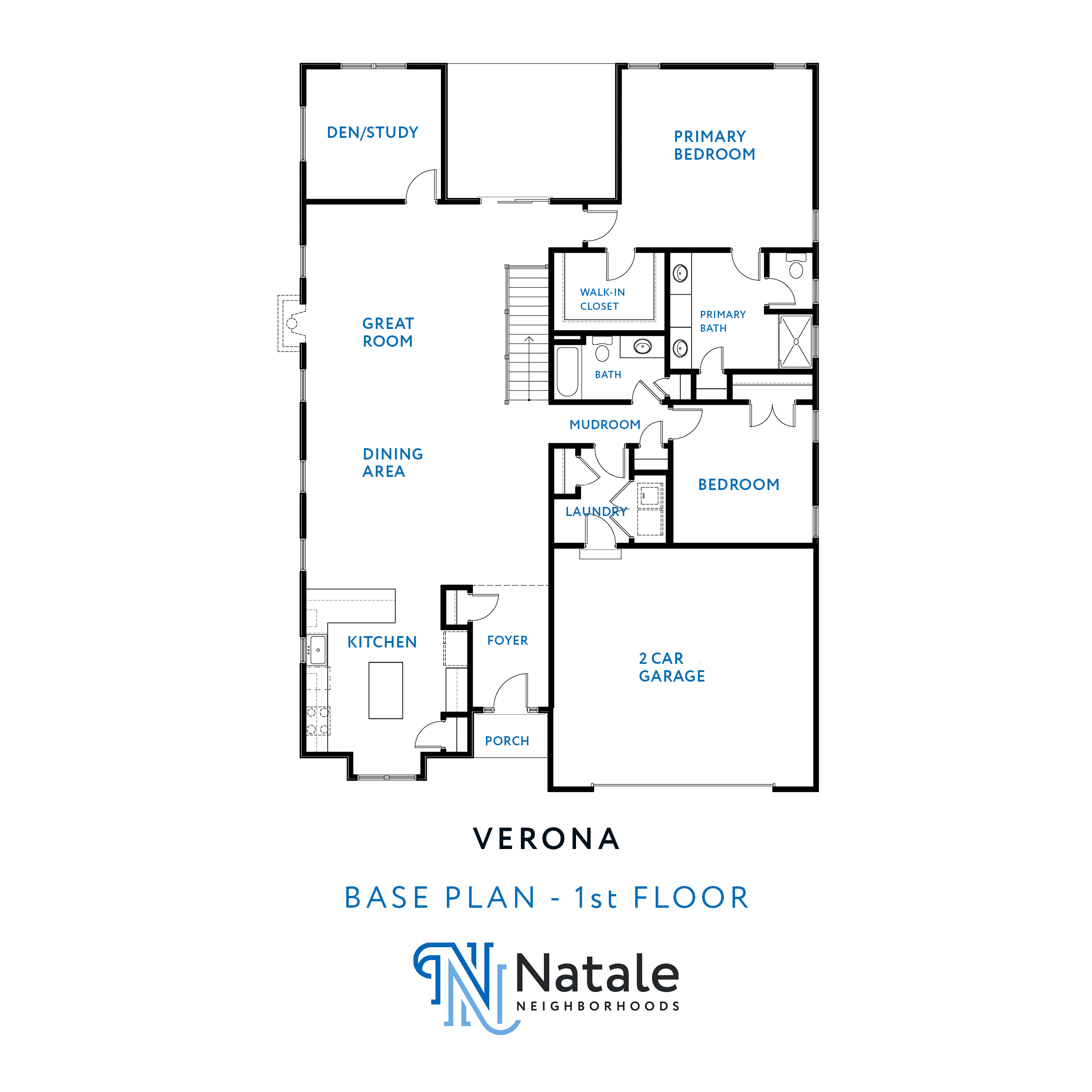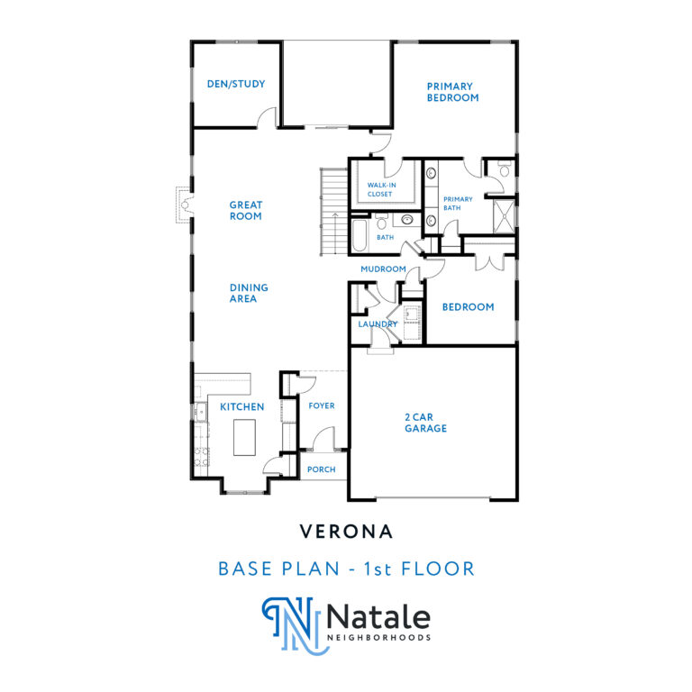 As you step into the Verona, you’re greeted by the foyer, situated at the front. This area provides access to both the main entrance and the garage. Conveniently positioned adjacent to the foyer and garage is the laundry/mudroom. Across from this space lies the dining room, kitchen, and great room seamlessly interconnected, a perfectly planned open space for hosting gatherings. Moving to the opposite side of the house, you’ll discover the first bedroom, main bathroom, and the primary suite. The primary suite comprises a generously sized bedroom, a bathroom, and walk-in closet. Towards the rear of the house, you’ll encounter the office and covered porch area.